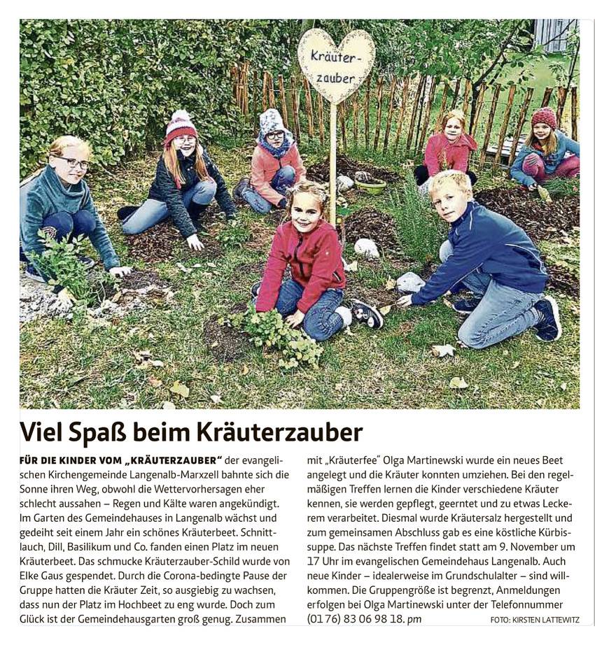 Unsere Gemeinde ist etwas ganz Besonderes - das haben Sie vielleicht schon gemerkt. Und so hat es uns auch gar nicht erstaunt, dass es hier eine echte Kräuterfee gibt. Vor einem guten Jahr kam Olga Martinewski auf die Idee, in unserem Gemeindehausgarten ein Kräuterbeet anzulegen und Kindern mehr über Kräuter und ihre vielseitige Verwendung beizubringen. Die Idee kam großartig an: Seither wird im "Kräuterzauber" gegossen, geerntet, gebastelt, gebacken und gekocht - also... normalerweise. Im Moment pausiert auch diese Gruppe coronabedingt. Für unseren Adventskalender haben sich Olga und Daniela deshalb etwas einfallen lassen, das kleine und große Menschen auch alleine und zuhause prima hinbekommen: ein wunderbares weihnachtliches Dufterlebnis! Im Video zeigen sie, wie es geht.